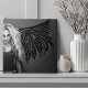 Striking and unapologetically bold, this dark fantasy artwork features a fierce woman with piercing red eyes set against dramatic tribal angel wings. Originally created as a band CD cover, the design carries a raw, music-driven energy—like a visual echo of heavy riffs and haunting vocals. The monochrome palette amplifies the intensity, while the intricate tribal wing design adds a sharp, symbolic edge.