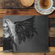 Striking and unapologetically bold, this dark fantasy artwork features a fierce woman with piercing red eyes set against dramatic tribal angel wings. Originally created as a band CD cover, the design carries a raw, music-driven energy—like a visual echo of heavy riffs and haunting vocals. The monochrome palette amplifies the intensity, while the intricate tribal wing design adds a sharp, symbolic edge.