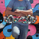 This skateboard features a striking graffiti-inspired design with bold, angular abstract shapes in shades of grey, teal, and orange. The "Ride Fast Live Free" motto in vibrant red stands out against the dynamic backdrop, symbolizing the freedom and adrenaline that skaters embrace. The raw, urban aesthetic and intense color contrasts make this deck perfect for those who want to ride with bold style and express their rebellious spirit. Whether you're at the skatepark or on the streets, this design brings energy and attitude to your ride.