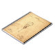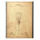Spiral bound notebook features the original illustration for Thomas Edison's incandescent bulb patent on an antique background.