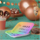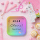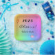 Colorful gradient rainbow background with bright stars, Year "Cheers" and host name(s) decorate these festive 7" square party paper plates. Edit Year, change name using the easy Template provided. 9" square, 7" & 9" round plates and 7" bowl are also available. Sold in sets of 8 and printed on durable paper stock. See "About This Product" at side for more information and care.