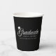 Modern classic mortarboard graduate paper cups with editable background color (click customize, go to the "Auto Warping, Wrap" layer and change the background color). This a great way to match your cups to your school or favorite colors.