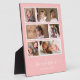 Photo plaque with six photos arranged in a grid layout each with a white border around them and all against an editable background color (click customize to change background color). You can also add your family name in a stylish calligraphy font and the year established. Perfect for wedding gifts, family keepsakes, etc.