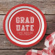 Varsity style Graduate paper plate featuring white stripes against an editable background color (click customize to change).