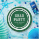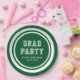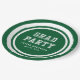 Varsity style Graduation Party paper plate featuring white stripes and the words "Grad Party" against an editable background color (click customize to change).