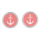 Nautical cufflinks featuring a white anchor against a background color that is editable (click customize to change).