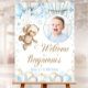 EDITABLE Birthday welcome sign. Personalized baby boy 1st Birthday. Blue and tan Teddy Bear, air balloon party, banner/. birthday banner, first birthday, editable template, birthday sign, birthday welcome, printable sign, welcome sign, teddy bear party, hot air balloon, baby boy birthday, vertical banner, 1st boy Birthday