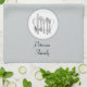 A simple design with custom script text and featuring a set of silverware on a pretty white table napkin embellished in grays and black on a light gray background. Add your logo, change background colors and more, even save your design for later.