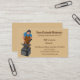 This editable business card features an illustration of a blacksmith hard at work to the left and the business details to the right. This information is editable so go ahead and change the details as well as the font style, size and colour. On the back is a field for additional details which is editable, as well. The background colours can be changed, too.