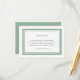 This modern classic wedding details card features an editable color; to change the color of the border and back background from sage green to the color of your choice, click the customize button and simple change both the front and back background color.