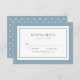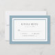 This modern classic wedding RSVP card features an editable color; to change the color of the border and back background from dusty blue to the color of your choice, click the customize button and simple change both the front and back background color.