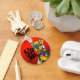 This keychain is customizable (see the bright orange "Customize It" button? XD), Zazzle's tools will let you change an image's size, how it's rotated, and you can remove and add images/text =DThe character is acutally full-size, so if you shrink him, you can see him from head to feet on the keychain 8DThe fancy text image things are also seperate from each other, so you can move them apart or get rid of "Bossa" to just have his nickname "Nova"~!