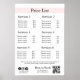 Display your services beautifully and professionally with this elegant editable price list template. Perfect for spas, nail salons, hair stylists, coffee shops, estheticians, and small businesses, this customizable design lets you clearly showcase your services and pricing in a clean, modern layout.Easily personalize the business name, service list, descriptions, and prices to match your brand. Whether you run a luxury spa, cozy café, beauty salon, or boutique service business, this price list sign helps create a polished and professional look for your space.