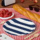 Paper plate featuring editable color (click customize and change the background color) and white stripes.