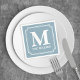 Modern Classic Name Monogram napkin featuring a classic square with ticket corner border in white and an editable background color (Click "Customize it" to change it) which you can change to whatever you like. This personalized monogrammed napkin looks great for your home, diner or bar.