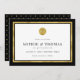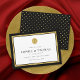 This modern classic save the date card features a faux gold foil border and circle on the front and faux gold foil polka dot back side. This card also has an editable background color; to change it from black to the color of your choice, click the customize button and change both the front and back background color. Check out other matching wedding items here https://www.zazzle.com/collections/editable_color_gold_round_monogram_wedding_1-119122458464023248?rf=238364477188679314&tc=rc .