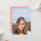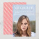 Modern photo graduation announcement card with the graduate's details within a grid in white. Card has a white stripes pattern against an editable background color (click customize to change) back side.