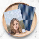 Modern photo graduation announcement card with the graduate's details within a grid in white. Card has a white stripes pattern against an editable background color (click customize to change) back side.