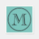 Modern Classic Monogram napkin featuring a classic round border in black and an editable background color (Click "Customize it" to change it) which you can change to whatever you like. This personalized monogrammed napkin looks great for your home, diner or bar.