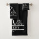 Elegant split monogram letter K Bath towel set set on a black background. Background color can easily be changed by clicking on "Personalize this template" to "Click to customize further" then on the left hand side under layers you will find the background color link. Click on it and change your color!