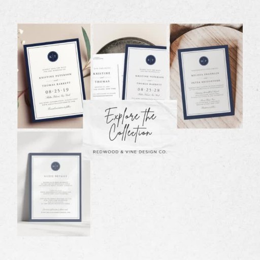 Finish your wedding invitations in elegant style with our monogram belly bands in rich, classic navy blue with your initials and wedding date in traditional serif lettering. Easily change colors to match your invitations by clicking "customize" and selecting a new background color.