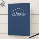 Welcome folder to file all the important information for your guests featuring an outline silhouette of a house and the word "Welcome" against editable background colors (click "edit it" and change the background color of all sides). This versatile folder can be used for vacation homes, vacation rentals, bed and breakfasts, etc.