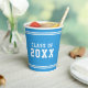 Stylish varsity style paper cups featuring your graduating year with fully editable colors. Font colors can be change by clicking on customize, select the texts in the "Auto Warping, Front" and "Auto Warping, Back" layers and change its color . Stripes color can be changed by clicking on customize and changing the color of "line" in the "Auto Warping, Wrap" layer and background color can also be changed on the same layer. They make the perfect paper cups for graduation and class reunions.