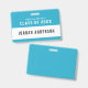 This varsity style name badge is ideal for class reunions and has an editable background color (click customize to change) that you can change to match your school colors.