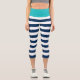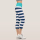 Nautical style capri-length leggings featuring a white stripes pattern with an editable background color, click the customize button to change the background color of the front and waist layer.