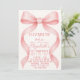 Plain white envelopes are included with paper invitations and will come to fit the invitation size you select. If you don’t need the envelopes, you may choose to not receive them by selecting the dropdown below "Envelopes" and choosing "None." If you’d like to have a design on your envelopes, you can browse all of these available envelopes to find the design that complements your Editable Coquette Pink Bow Birthday Invitation.