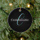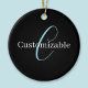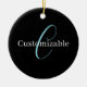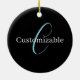 Editable Cursive Script Monogram Black Blue White Ceramic Ornament