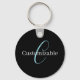 Editable Cursive Script Monogram Black Blue White Keychain