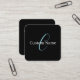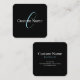 Editable Cursive Script Monogram Black Blue White Square Business Card