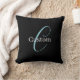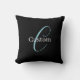 Editable Cursive Script Monogram Black Blue White Throw Pillow