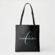Editable Cursive Script Monogram Black Blue White Tote Bag