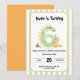 Celebrate your little one turning SIX with this clean and playful dinosaur-themed birthday invitation. Featuring a bold number “6” with a friendly dino design, this invite keeps things simple, modern, and easy to customize.