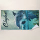 This beautiful beach towel features a dolphin and an editable name at the top.