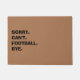 This doormat features the words Sorry Can't Football Bye. The word "football" is editable so go ahead and change it to whatever sport or excuse you'd like! The colour of the doormat can be changed, too.