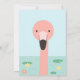 Personalize this charming flamingo-themed first birthday invitation card featuring a cute pink flamingo standing on a pond with water lilies. The flamingo’s long neck extends up the side of the card to the top corner, creating a playful and elegant design. The spacious blank areas allow easy customization of all text including name, date, and party details.perfect for printing or digital use.