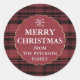 Editable flannel plaid pattern gold red Christmas Classic Round Sticker