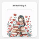 Editable Girl With Hearts and Stack of Books Square Sticker