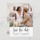 Modern and Elegant Photo Save the Date Wedding Card. The save the date invitation card includes white Hand Lettered typography and chic and simple design on a white background that you can add your customized engagement photograph picture to.