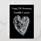 1 page, 2 sides - A customizable Art Deco shiny metallic foil art elegant unique illustrated anniversary card with a digitally hand drawn crystal love heart illustration on the front in a custom foil color / color, e.g. gold, silver, bronze. Front - A gold foil design on a black background w. the heart graphic. Back - a black and white palette, the heart graphic, with editable text (also has shop reference that says ‘designed by Zara Roza’ at the bottom in small text). You can edit the custom text on the front & back by pressing ‘personalize’ to change the name, insert the anniversary year, edit the text on the back. A gothic, Victorian, intricate versatile illustrated present / gift idea for anniversary parties, for anyone really, e.g. friends, family, daughter, son, mom / mom, dad, grandpa, grandma, aunt / auntie, uncle, niece, nephew, baby shower, best friends, boyfriends, girlfriends, partner, wife, husband, for him, for her, Valentine’s Day, Halloween birthday parties, tea parties, sweet 16 gifts, festive events, etc.