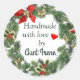 Editable Holiday Wreath Handmade With Love Classic Round Sticker