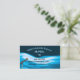 This editable karaoke jockey business card features a microphone in front of a blue wave background and the details of the business.