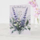 This card features an illustration of a lily of the valley flowers and lavender with an editable greeting above it. On the inside is an editable message. You can change the messages or delete them to create a blank card. You can also change the font style, size and colour. The background colour on all sides can be changed, too. This versatile greeting card can be used for birthdays, sympathy, thinking of you, thank-you cards etc.
