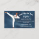 This editable business card features an illustration of a woman doing a karate kick to the left and the business details to the right. This information is editable so go ahead and change the details as well as the font style, size and colour. On the back is a field for additional details which is editable, as well.