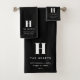 Editable Modern Monogram Name & Message | Black Bath Towel Set