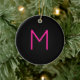 Editable Modern Pink & Black Monogram Ceramic Ornament