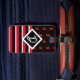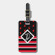 Editable - Monogram Initial Red White Black Luggage Tag